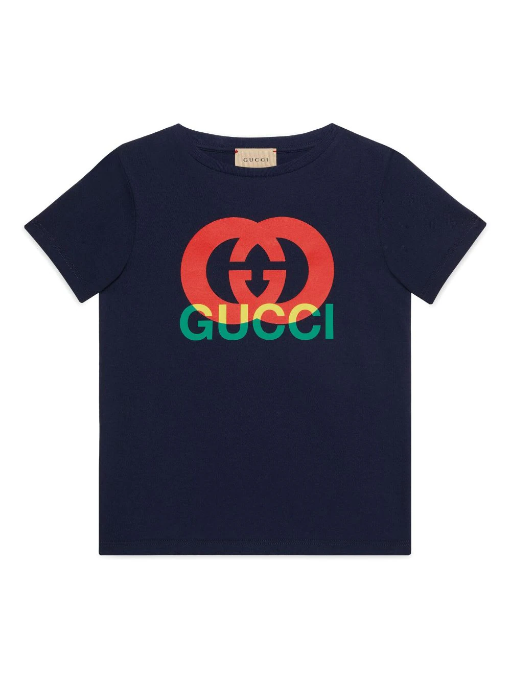 Maglia blu navy bambina,cotone, girocollo, maniche corte e orlo dritto,Gucci kids