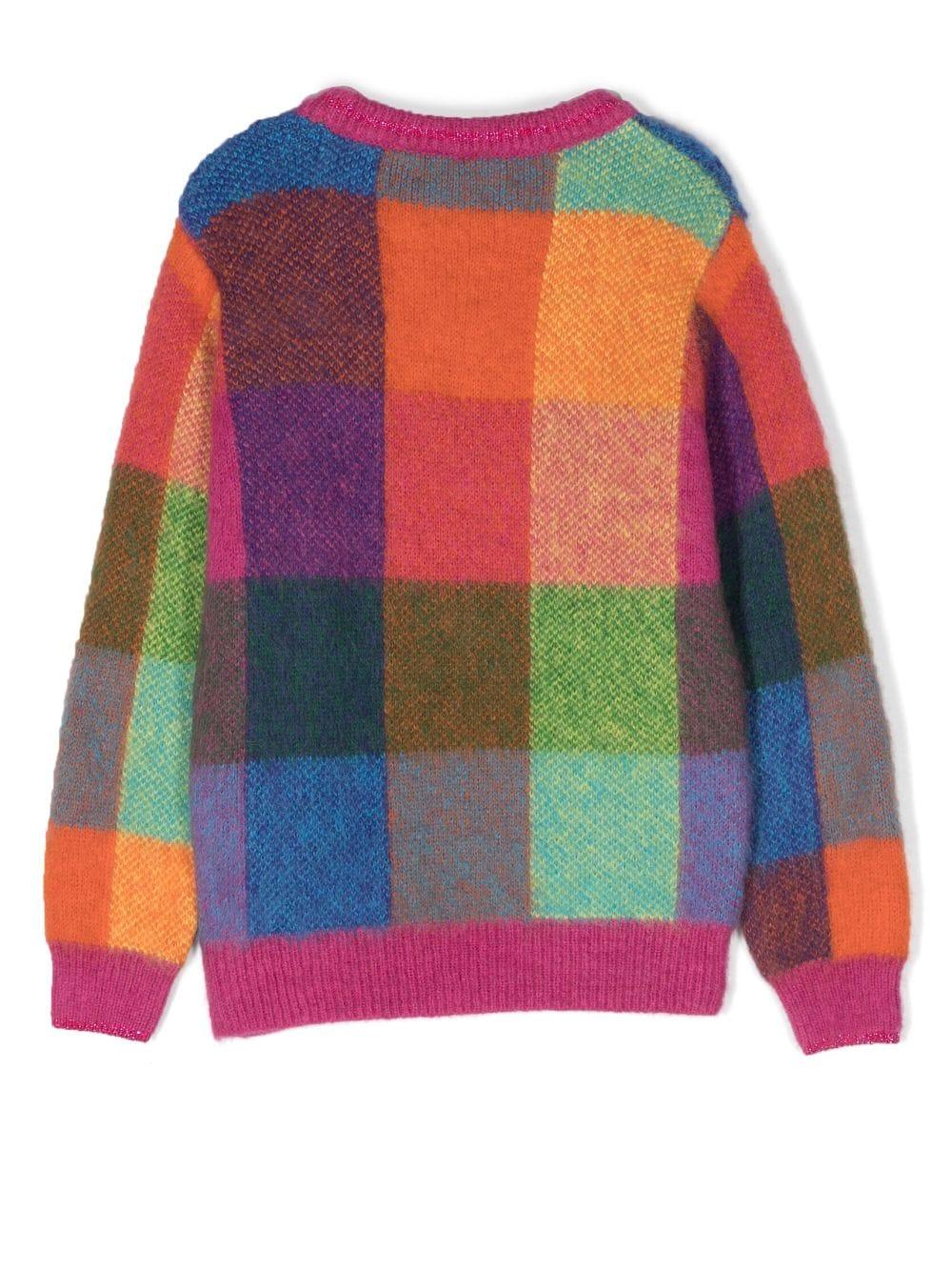 Maglia multicolor bambina MC2 Saint Barth Kids. Design lavorato a maglia, maglia fine, motivo a quadri, girocollo, maniche lunghe e orlo dritto. Acrilico 45%, Poliammide 35%, Alpaca 20%