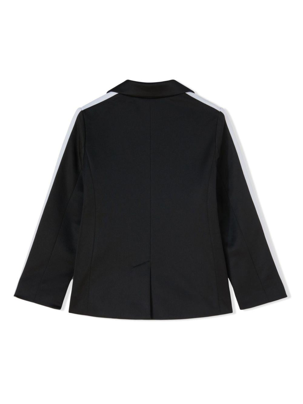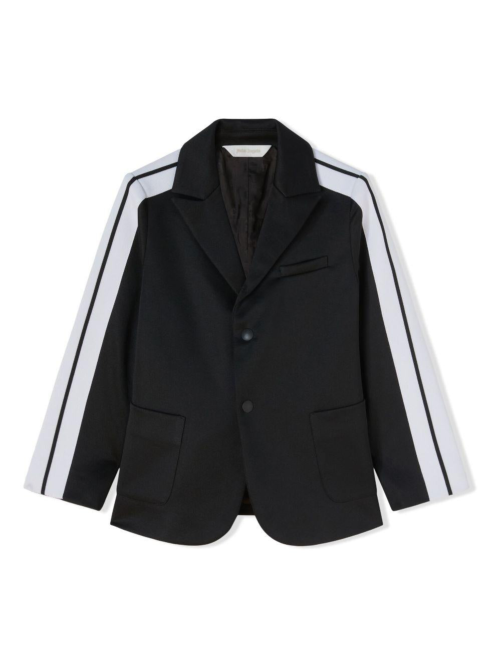 Blazer bianco e nero bambino, Palm Angels Kids, design bicolore, chiusura frontale con bottoni, tasca a filetto sul petto, due tasche applicate frontali, revers a punta, maniche lunghe e orlo dritto.ComposizioneEsterno: poliestere 63%, cotone 37%Fodera: acetato 58%, viscosa 42%